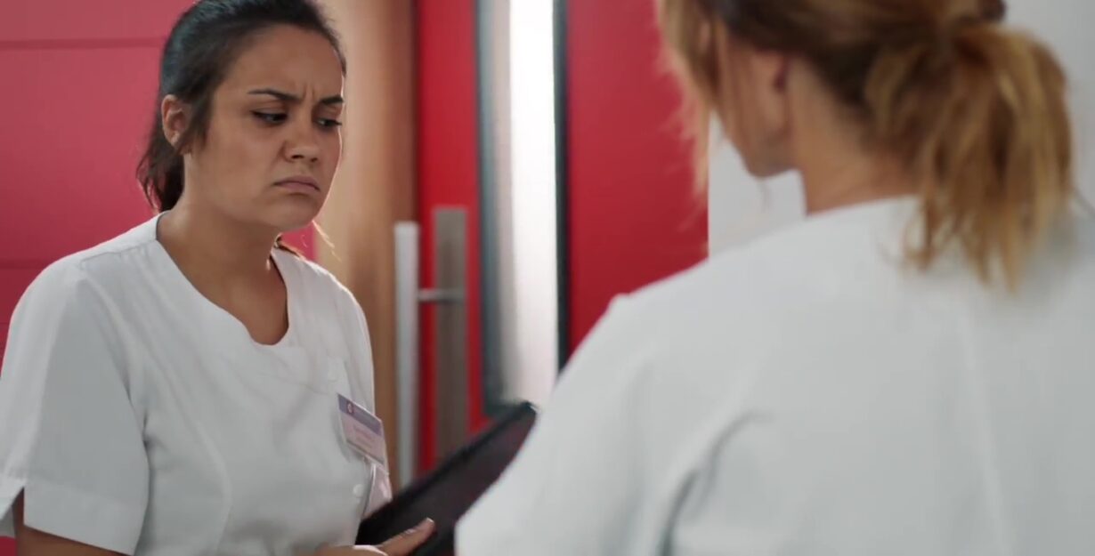 À l’hôpital, Chloé partage une expérience troublante avec Noor. Elle raconte qu’un patient, arrivé dans un état confus, l’a émue par ses paroles. L’homme, blessé et sous l’effet de l’alcool, lui a dit qu’il avait perdu la personne qu’il aimait et qu’il n’arrivait plus à avancer. Noor comprend aussitôt qu’il s’agit de Romain et file le retrouver dans sa chambre.